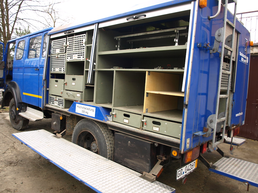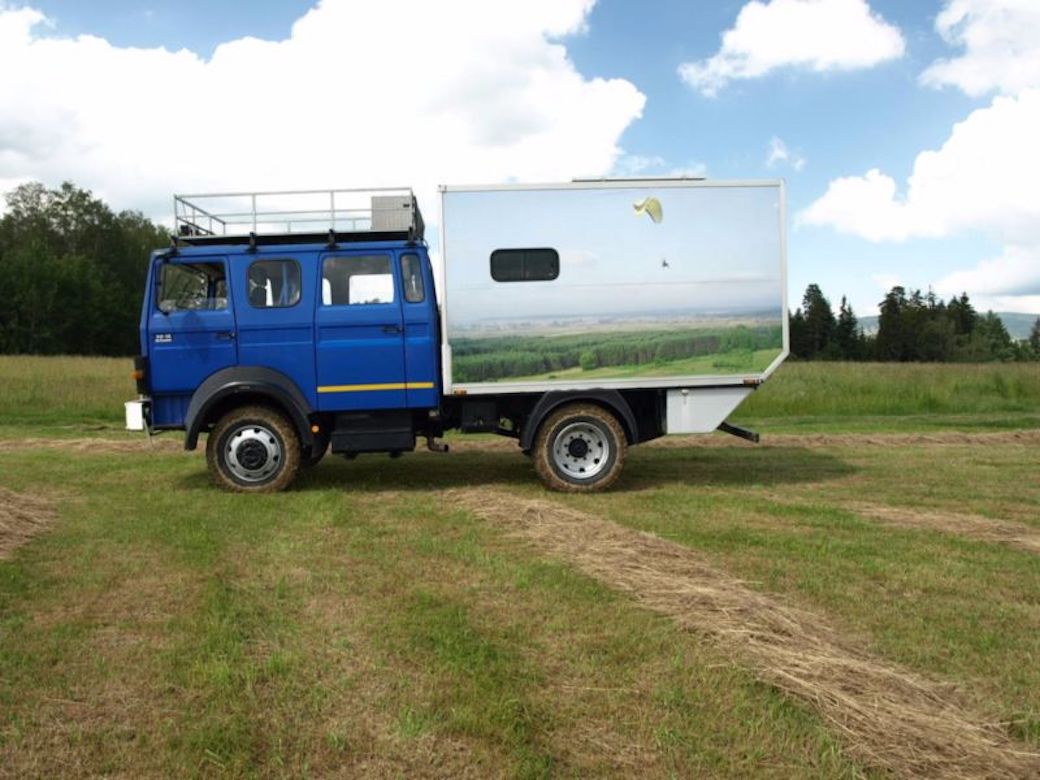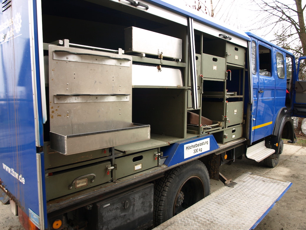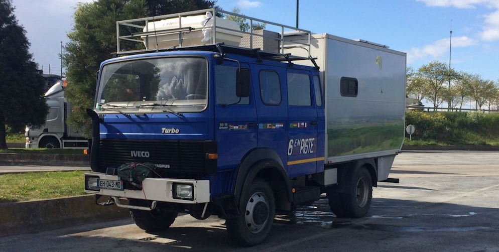 Pas de changement brutal, on reste sur 6 roues, libres, mais avec plus de confort : on vous présente notre nouveau compagnon d’aventure : un ancien camion des services d’intervention allemand, plein d’expérience puisqu’il a plus de 30 ans, mais encore très frais puisqu’il a moins de 35 000 km au compteur.