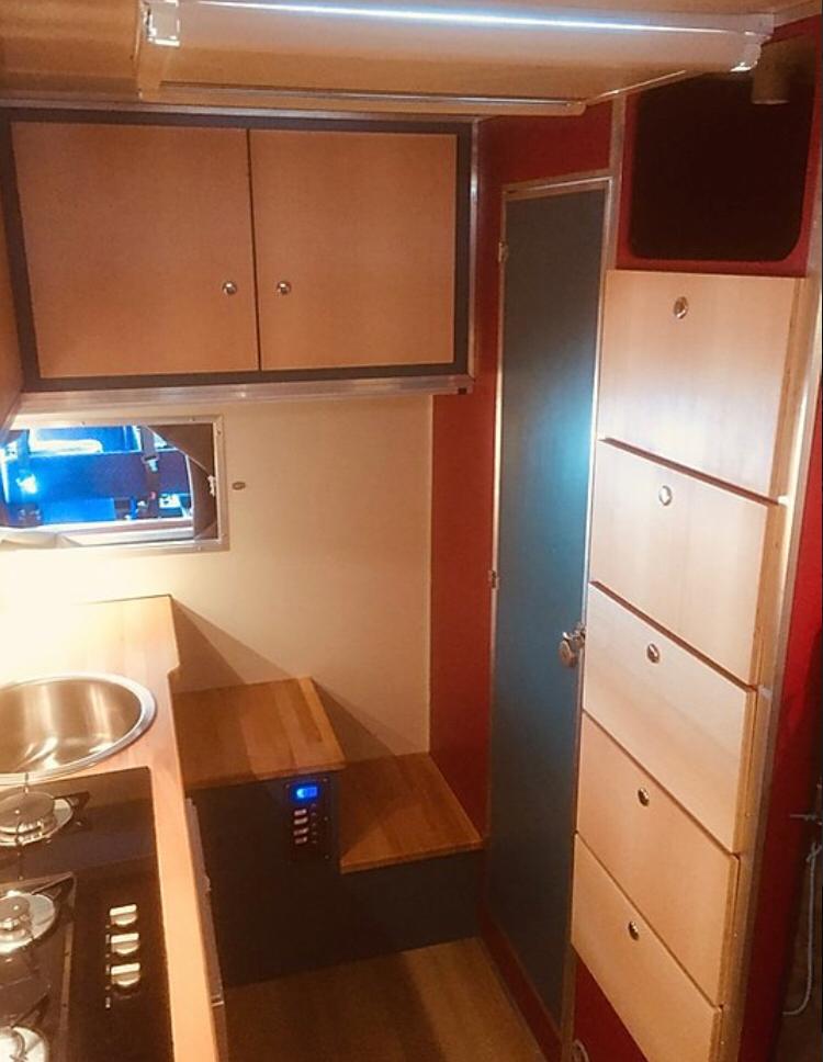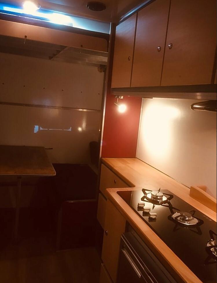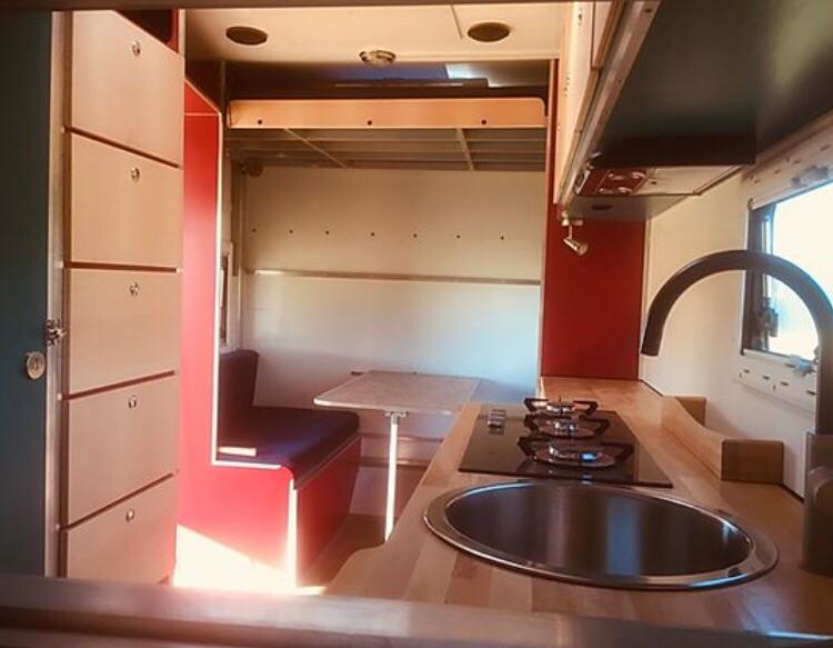 Il s’agit en fait d’une fabrique très spéciale : La Fabrique Atypique. Son créateur, Camille, un monsieur qui travaille notamment le bois avec beaucoup de talent, a mis quelques coups de baguette magique. Notre camion est désormais super agréable et beaucoup plus confortable à vivre. Mais les images sont plus éloquentes que les mots.